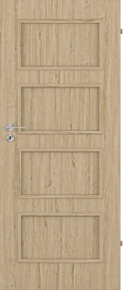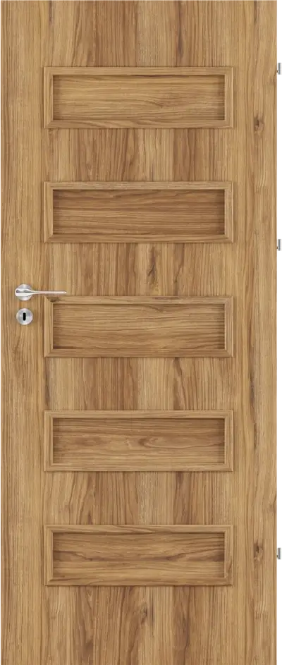 Foaia de ușă este realizată din MDF și lemn, având la interior un miez tip fagure, peste care este aplicată o placă de HDF de 3 mm grosime.