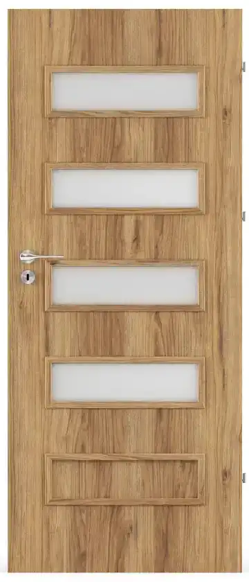 Foile de ușă și tocurile sunt acoperite cu o folie decorativă rezistentă la abraziune (0,10–0,15 mm), cu aspect de fibră de lemn. Durabile și atent finisate, acestea sunt alegerea ideală pentru cei care doresc un design care iese în evidență.